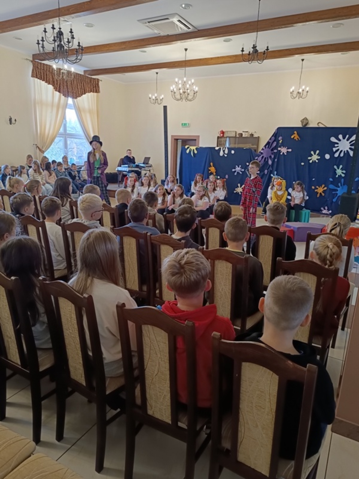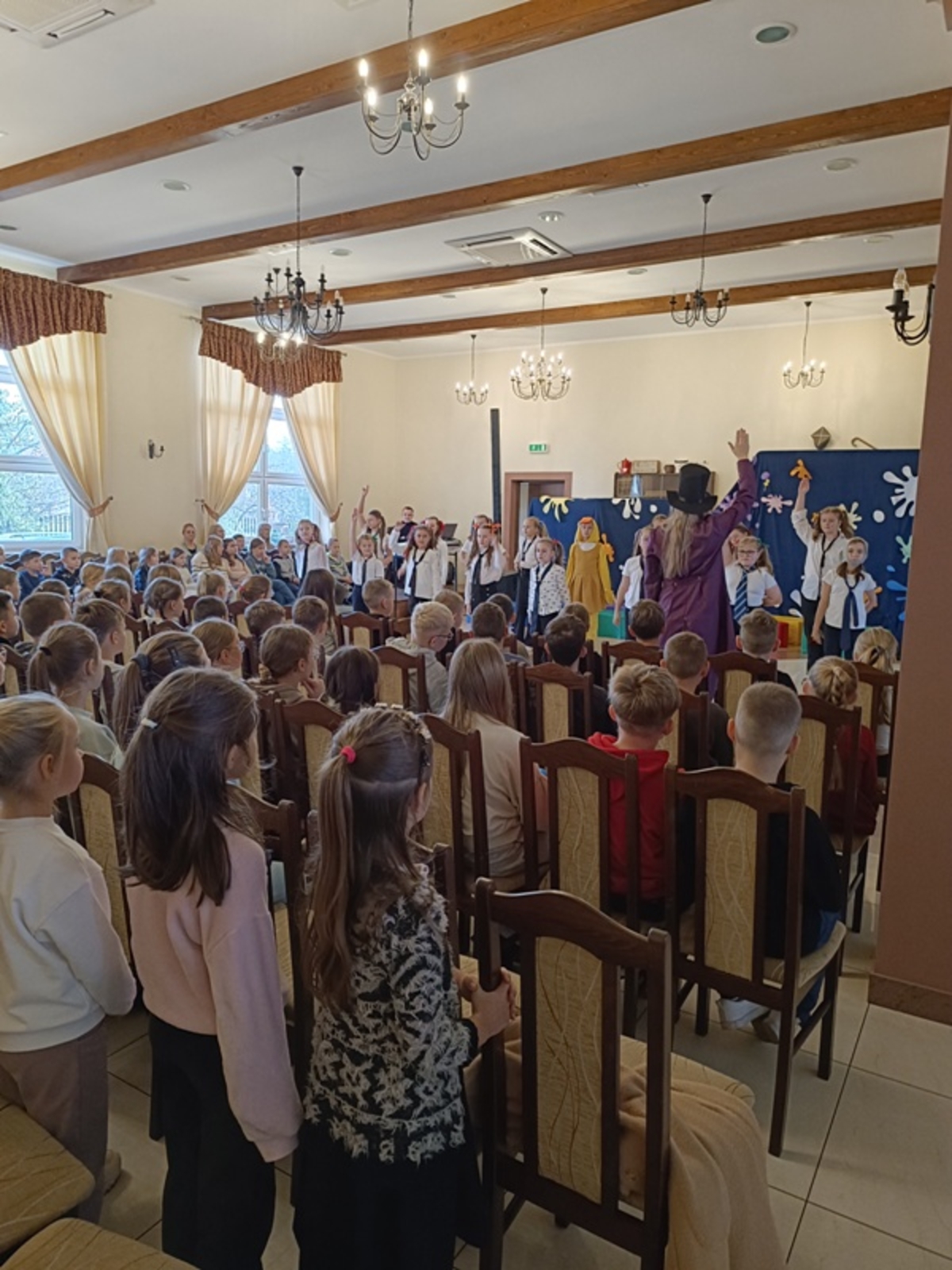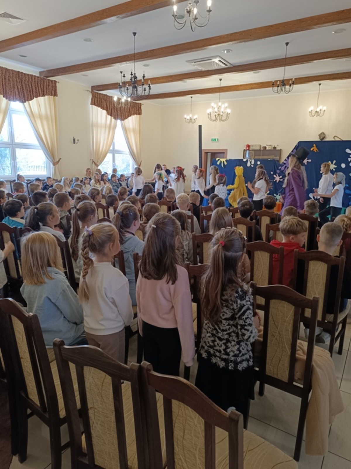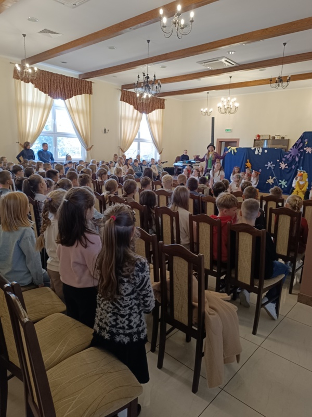 13 listopada uczniowie klas I – V naszej szkoły zostali zaproszeni do Izby Tradycji Regionalnej w Nowych Piekutach. Tam obejrzeli pięknie przygotowane i świetnie zagrane przedstawienie na motywach twórczości Jana Brzechwy. Występowali uczniowie z Zespołu Szkolno – Przedszkolnego w Jabłoni Kościelnej przygotowani przez Pana Grzegorza Witkowskiego. Pięknie zaśpiewane piosenki, doskonała recytacja wierszy, bardzo dobra gra aktorska – wszystko to sprawiło, że występ bardzo się podobał. Dziękujemy naszym kolegom z sąsiedniej szkoły, dziękujemy Pani Dyrektor Katarzynie Mantur, a także dziękujemy wszystkim pracownikom Gminnego Ośrodka Kultury w Nowych Piekutach za zorganizowanie tego wydarzenia.