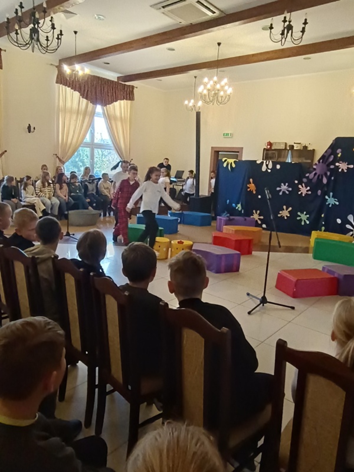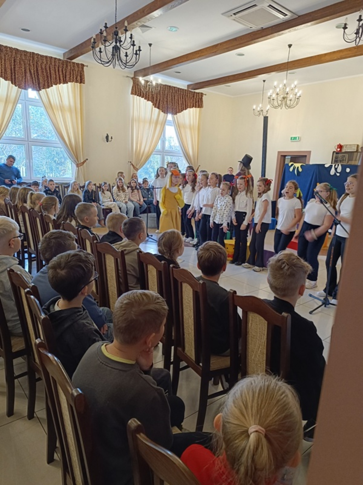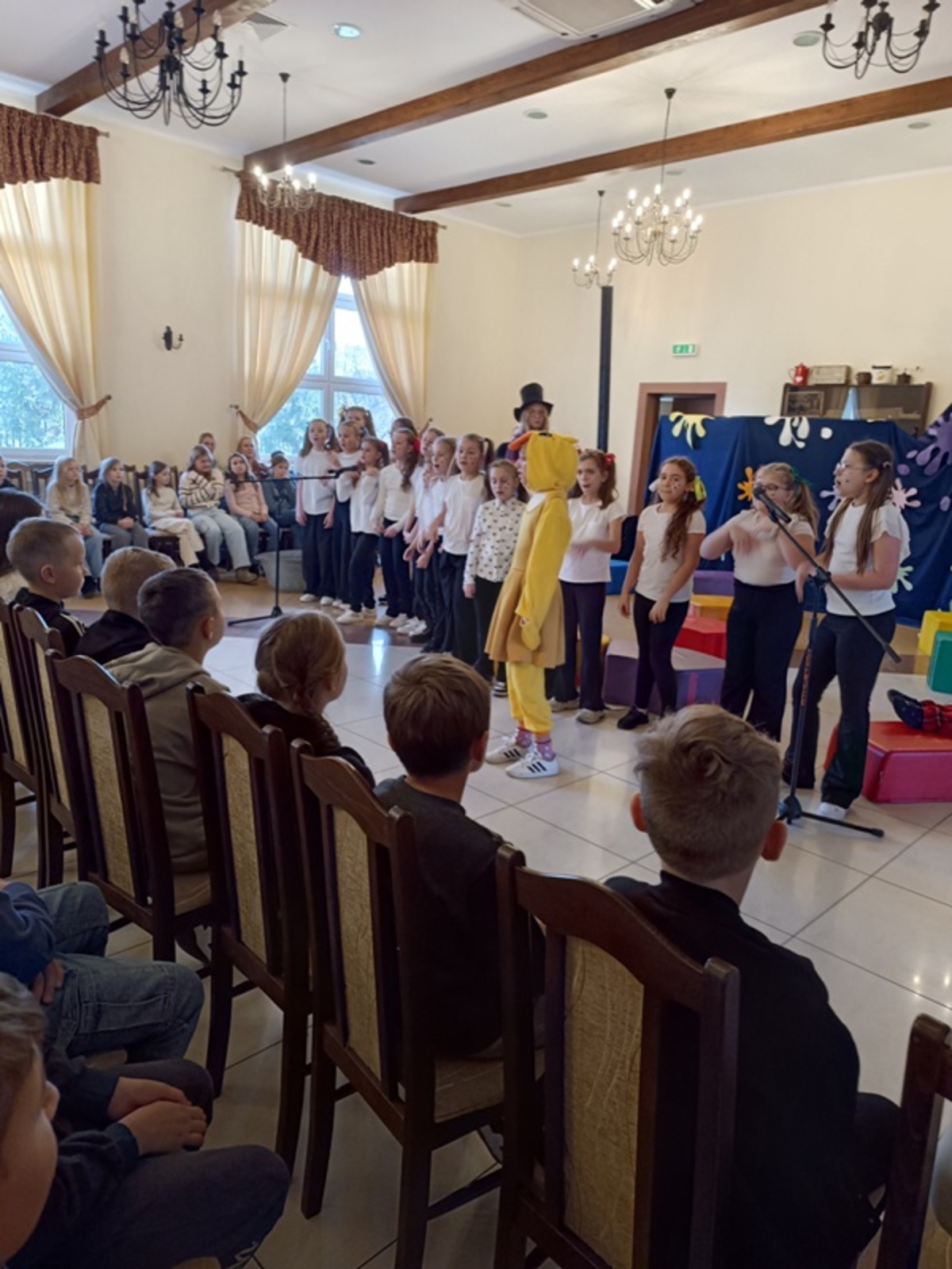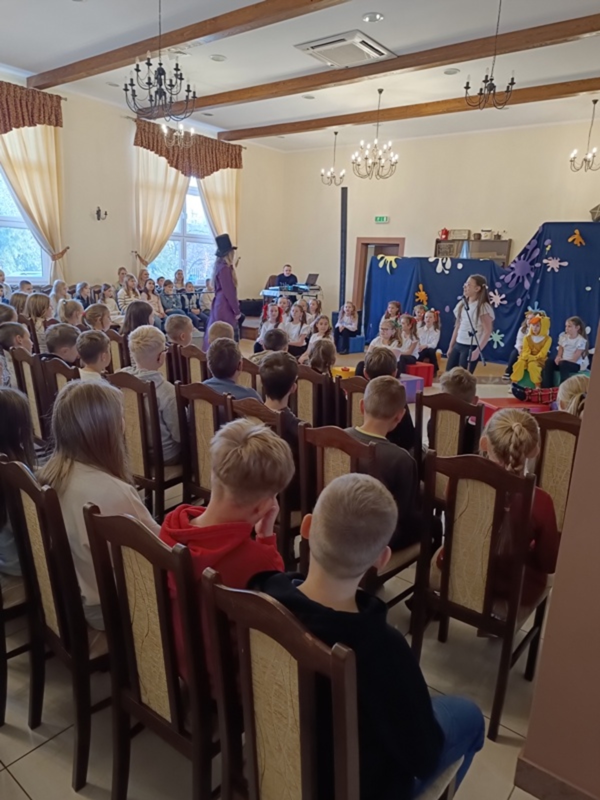 13 listopada uczniowie klas I – V naszej szkoły zostali zaproszeni do Izby Tradycji Regionalnej w Nowych Piekutach. Tam obejrzeli pięknie przygotowane i świetnie zagrane przedstawienie na motywach twórczości Jana Brzechwy. Występowali uczniowie z Zespołu Szkolno – Przedszkolnego w Jabłoni Kościelnej przygotowani przez Pana Grzegorza Witkowskiego. Pięknie zaśpiewane piosenki, doskonała recytacja wierszy, bardzo dobra gra aktorska – wszystko to sprawiło, że występ bardzo się podobał. Dziękujemy naszym kolegom z sąsiedniej szkoły, dziękujemy Pani Dyrektor Katarzynie Mantur, a także dziękujemy wszystkim pracownikom Gminnego Ośrodka Kultury w Nowych Piekutach za zorganizowanie tego wydarzenia.