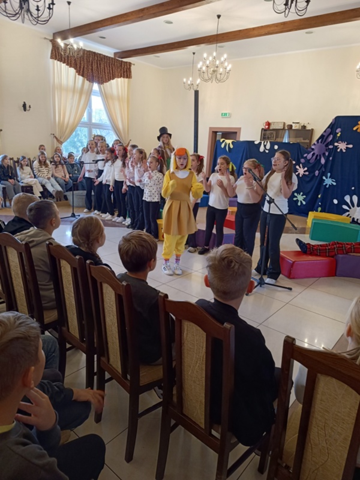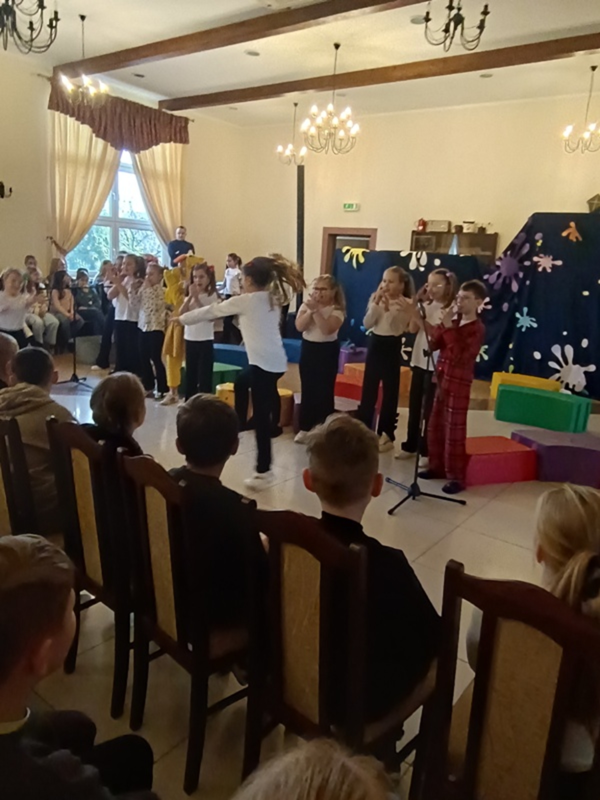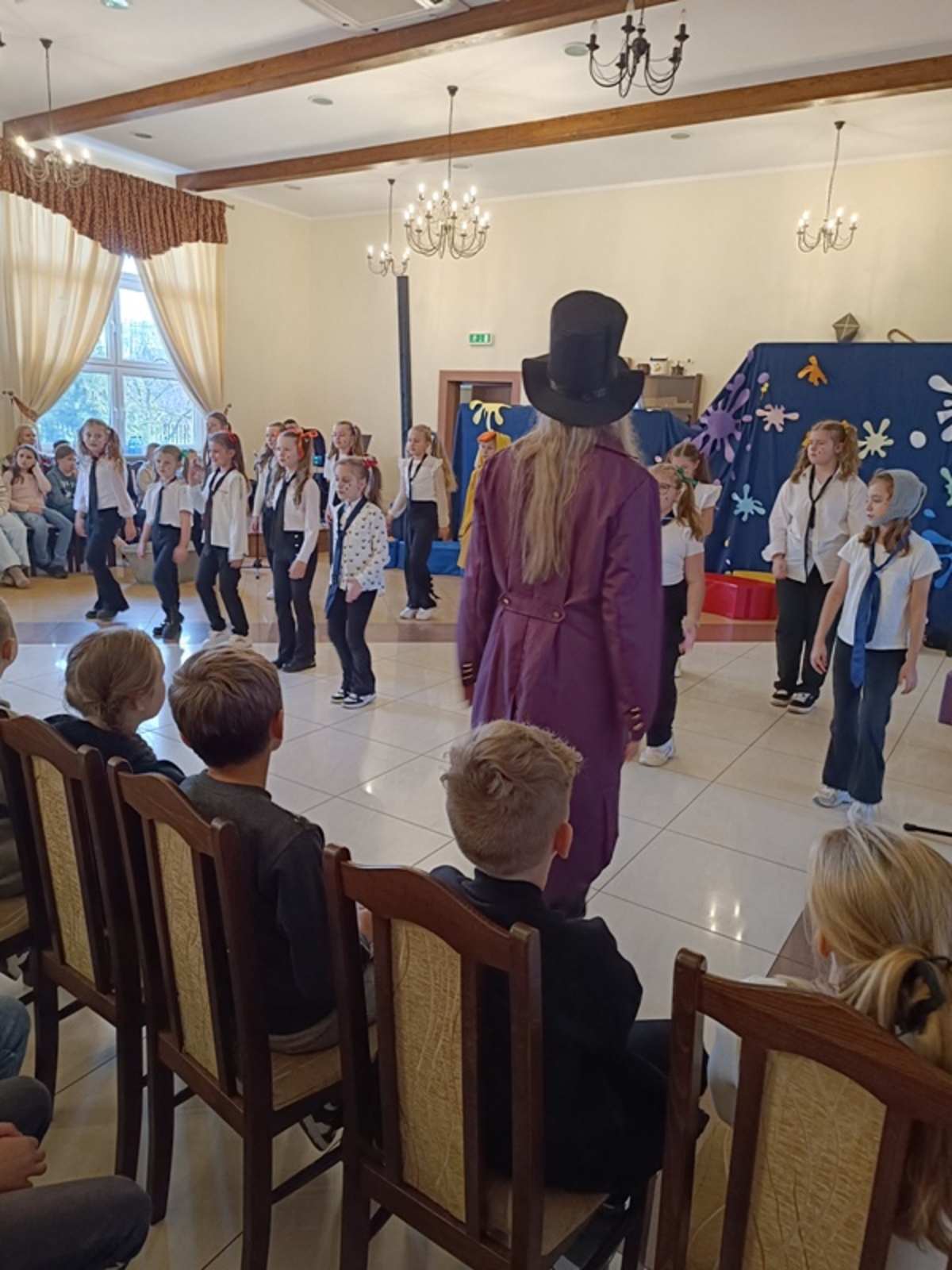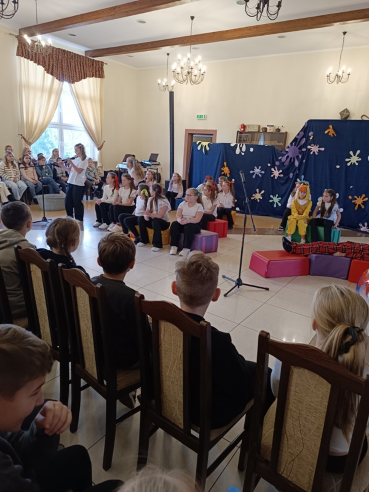 13 listopada uczniowie klas I – V naszej szkoły zostali zaproszeni do Izby Tradycji Regionalnej w Nowych Piekutach. Tam obejrzeli pięknie przygotowane i świetnie zagrane przedstawienie na motywach twórczości Jana Brzechwy. Występowali uczniowie z Zespołu Szkolno – Przedszkolnego w Jabłoni Kościelnej przygotowani przez Pana Grzegorza Witkowskiego. Pięknie zaśpiewane piosenki, doskonała recytacja wierszy, bardzo dobra gra aktorska – wszystko to sprawiło, że występ bardzo się podobał. Dziękujemy naszym kolegom z sąsiedniej szkoły, dziękujemy Pani Dyrektor Katarzynie Mantur, a także dziękujemy wszystkim pracownikom Gminnego Ośrodka Kultury w Nowych Piekutach za zorganizowanie tego wydarzenia.