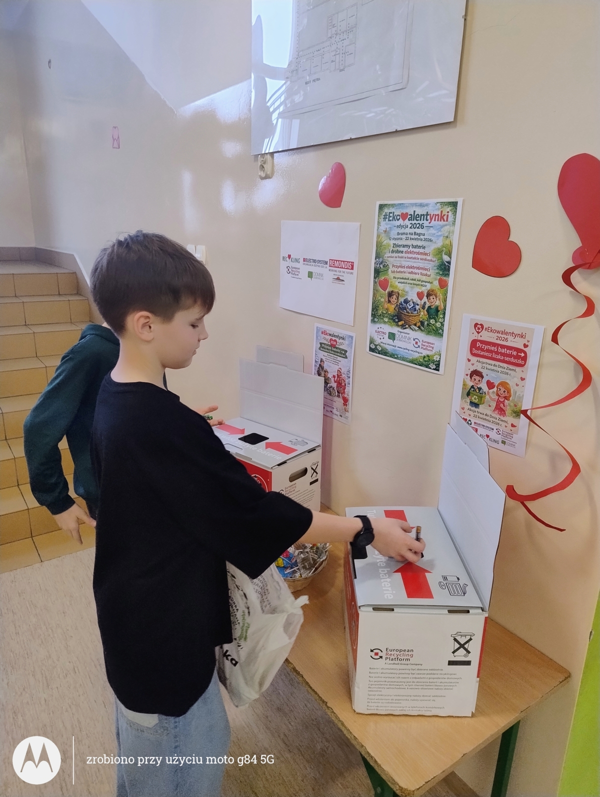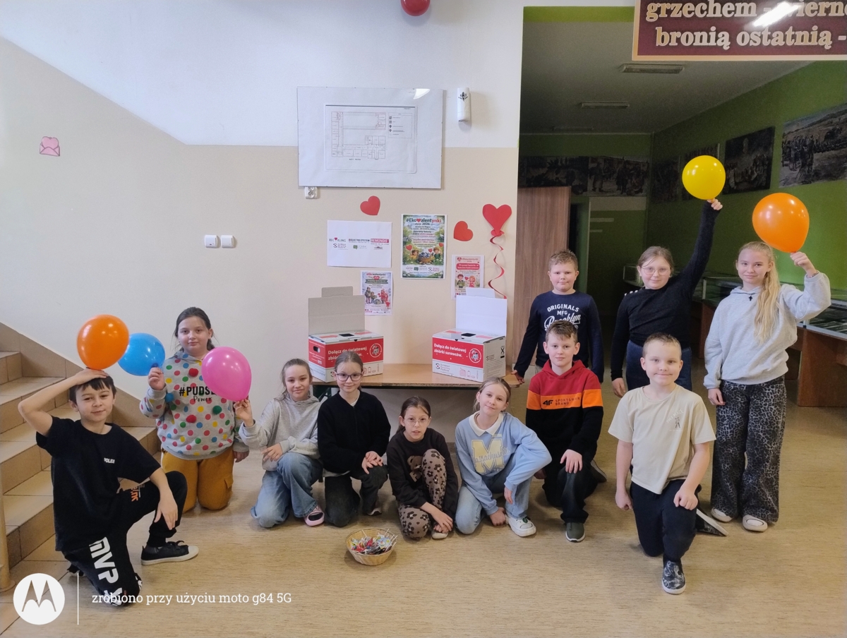 Dzisiaj 13 lutego nasza szkoła włączyła się po raz pierwszy do ogólnopolskiej akcji #Ekowalentynki2026 poprzez przynoszenie zużytych baterii oraz małych sprzętów elektronicznych. W zamian za wrzucone zużyte baterie uczniowie oraz przedszkolaki otrzymywali słodkie lizaki w kształcie serca. Udowodniliśmy, że podczas święta zakochanych, na to najwspanialsze uczucie, zasługuje również Ziemia. Nasza codzienna troska o otaczający świat jest najlepszym dowodem miłości do naszej planety.