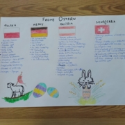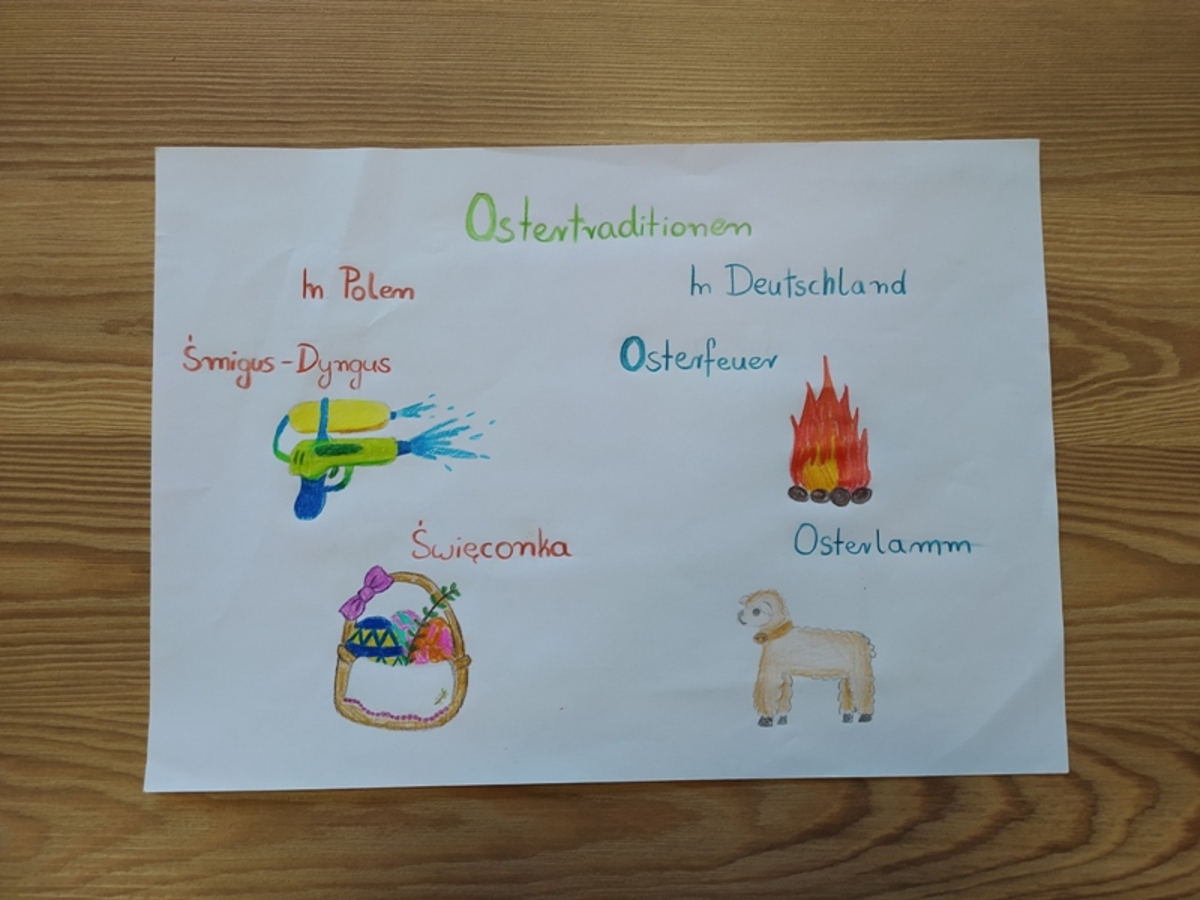 W naszej szkole został zorganizowany konkurs językowo-plastyczny „Frohe Ostern” z języka niemieckiego. Organizatorem konkursu była Szkoła Podstawowa nr 7 im. Adama Mickiewicza w Łomży. Zadaniem konkursowiczów było plastyczne przedstawienie różnic w tradycji obchodzenia Świąt Wielkanocnych w Polsce i w Niemczech. Konkurs składał się z dwóch etapów. Pierwszy etap był etapem szkolnym. W konkursie wzięło udział kilkunastu uczniów z naszej szkoły. Dwie najlepsze prace zostały wysłane do szkoły w Łomży na etap finałowy. Uczniowie, którzy wzięli udział w konkursie to: