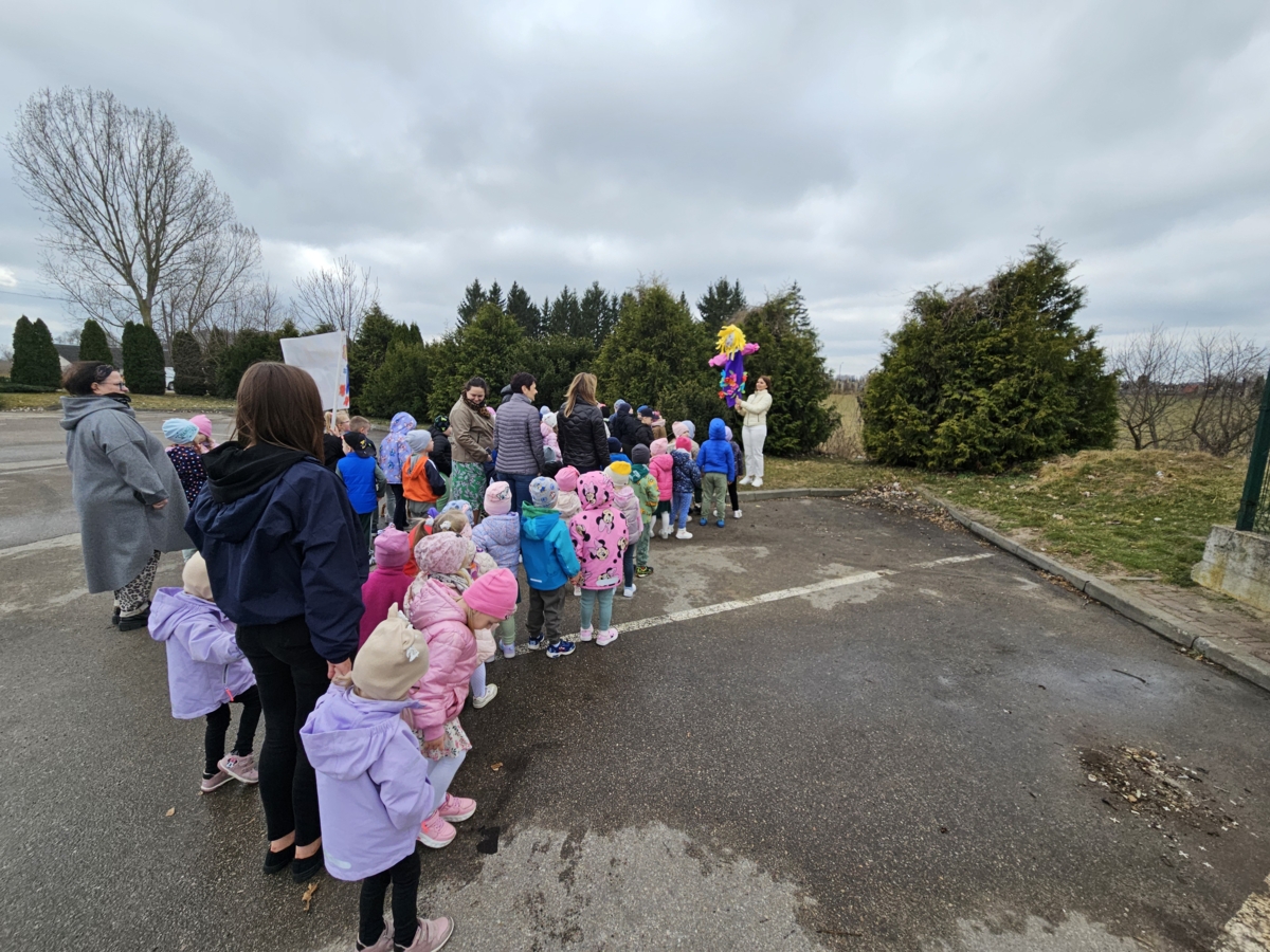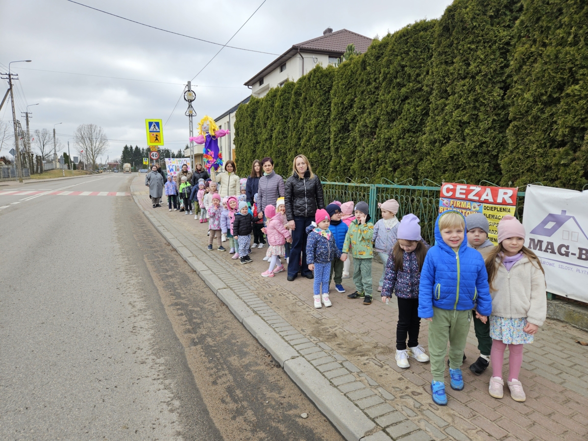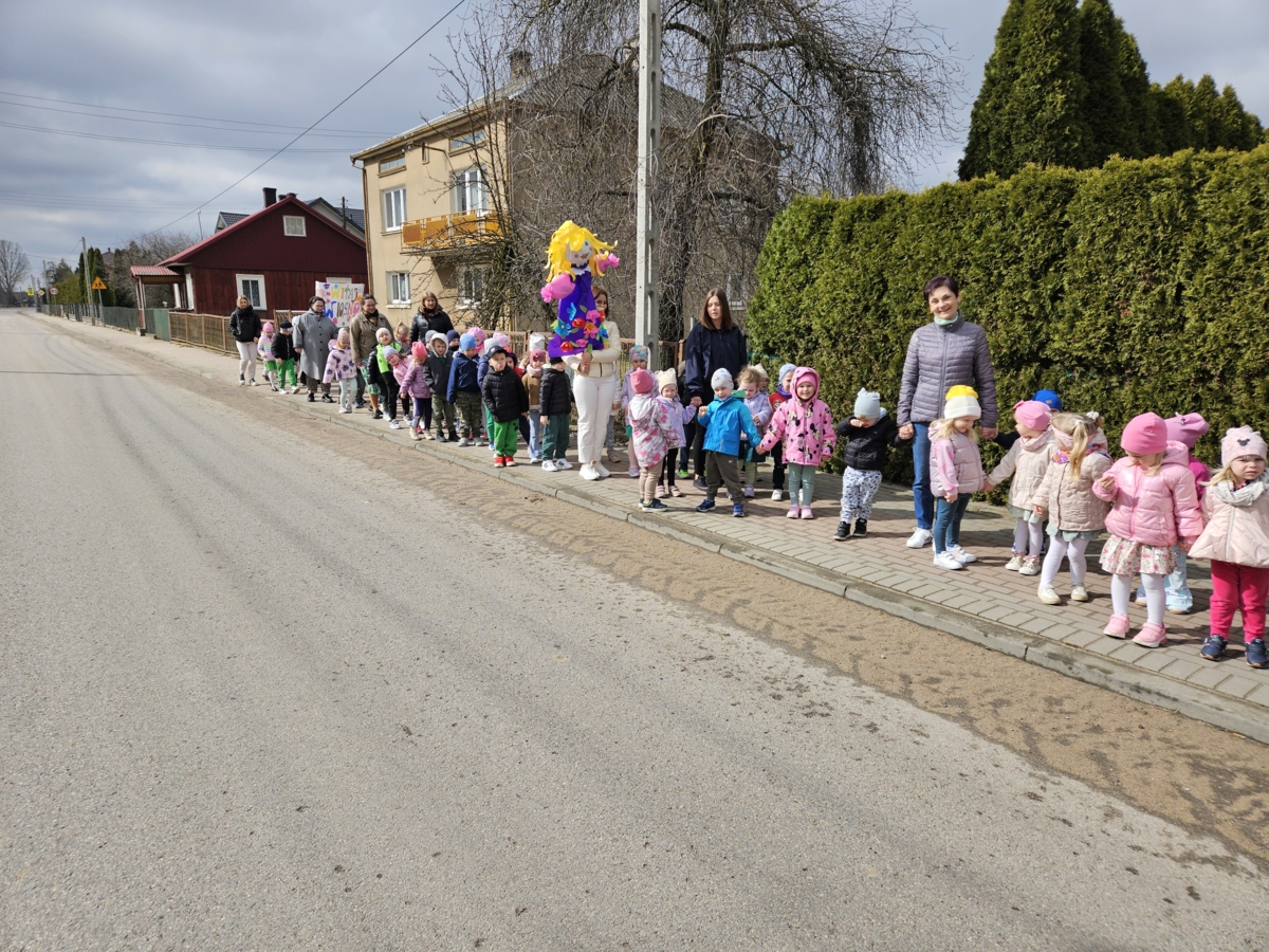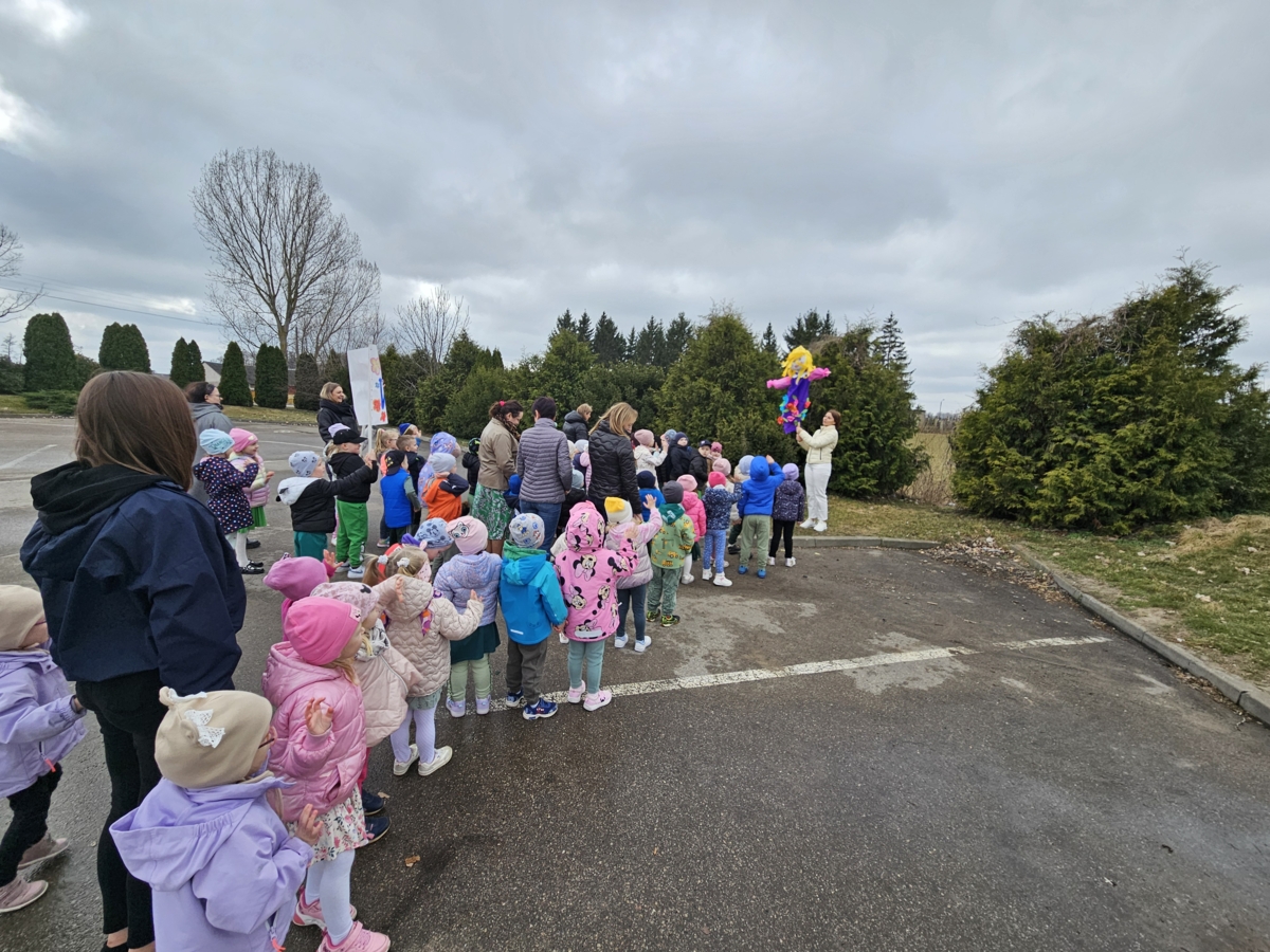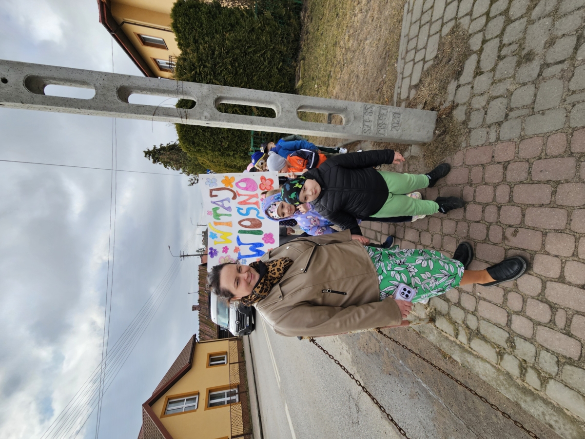 Wspólnie przygotowaliśmy symboliczną Marzannę, a następnie wzięliśmy udział w wiosennym spacerze, podczas którego dzieci obserwowały przyrodę budzącą się do życia. Nie zabrakło także zabaw ruchowych, śpiewania piosenek o wiośnie oraz prac plastycznych związanych z tą tematyką.
