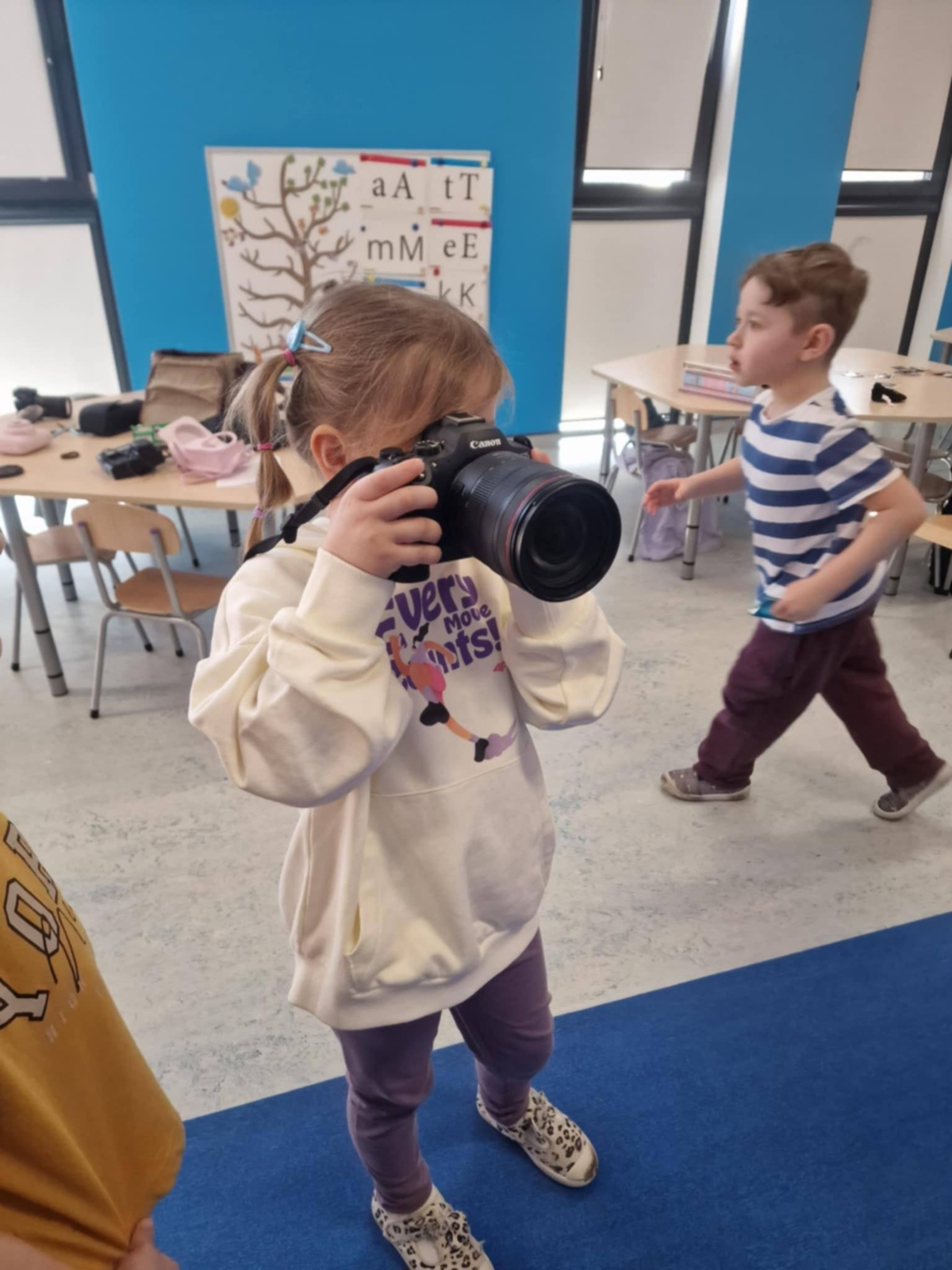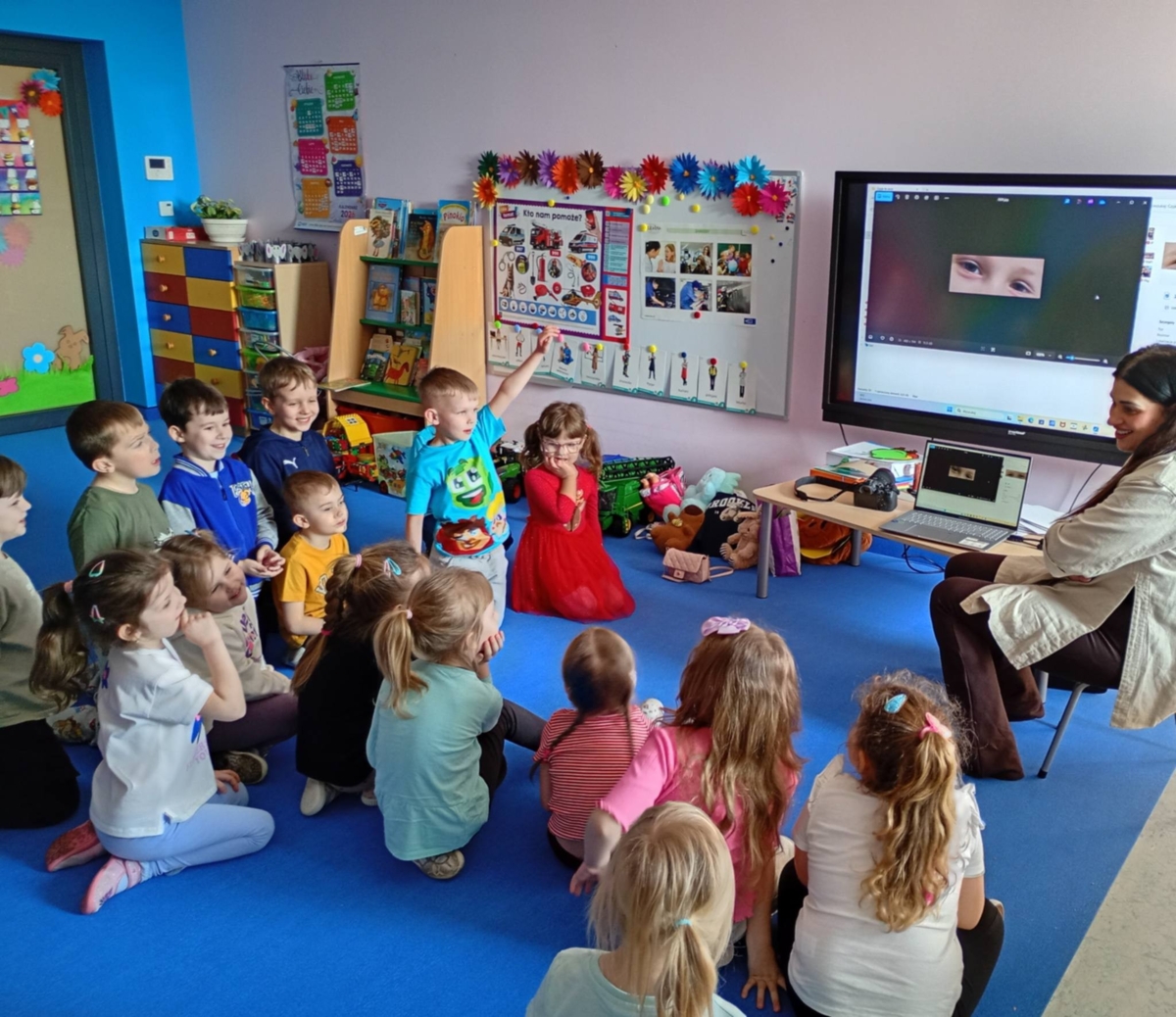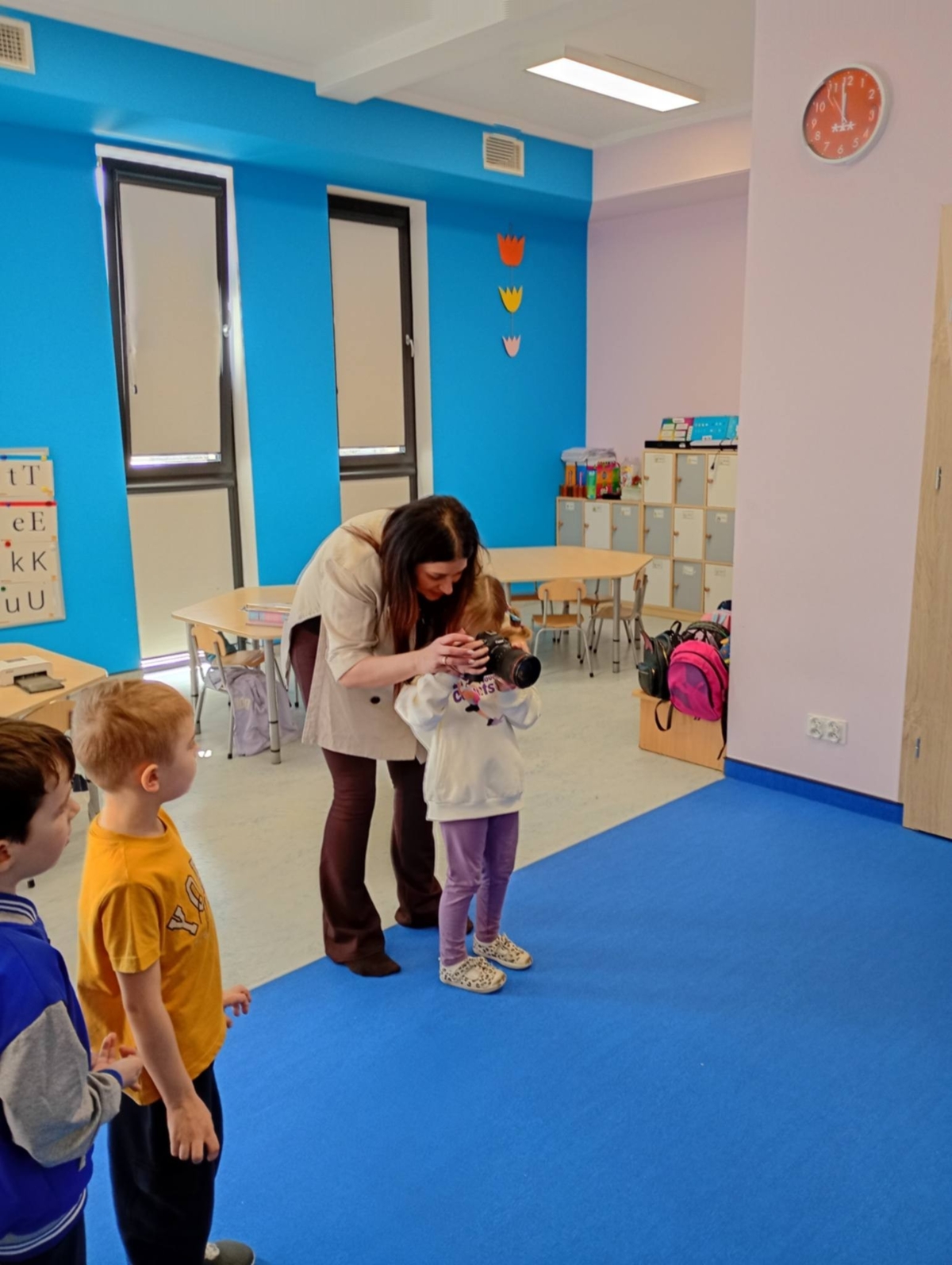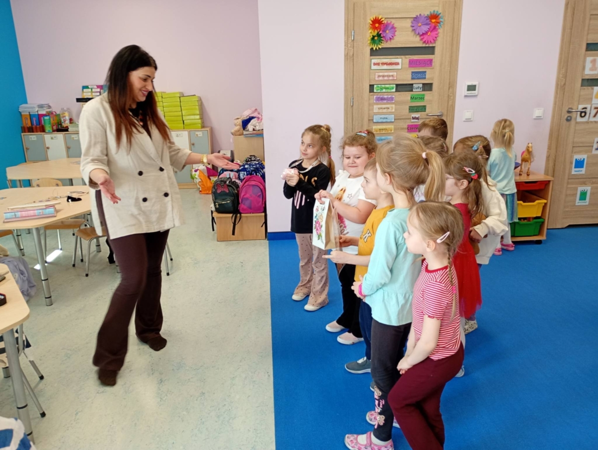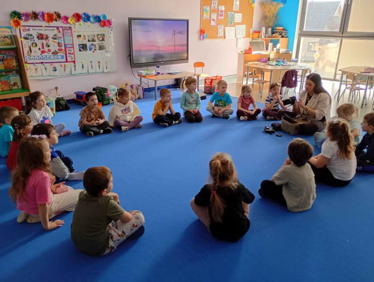W piątek 13 marca, w grupie 5-latków odbyło się wyjątkowe spotkanie z Panią fotograf – Sylwią Radulską, która opowiedziała o swojej pasji i pracy. Podczas spotkania, zaproszony gość przedstawił na czym polega zawód fotografa oraz jak wygląda robienie zdjęć. Dzieci mogły zobaczyć różne rodzaje aparatów fotograficznych, sprzęt, którego Pani Sylwia używa w swojej pracy oraz dowiedzie się w jaki sposób fotografie są drukowane. Największą radość sprawiła dzieciom możliwość samodzielnego robienia zdjęć. Podczas spotkania nie zabrakło także zabawy. Przedszkolaki brały udział w zgadywance, w której na podstawie zdjęć oczu próbowały odgadnąć do kogo należą. Na zakończenie spotkania dzieci podziękowały Pani fotograf za wizytę , wręczając jej przygotowany podarunek.