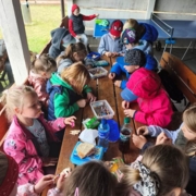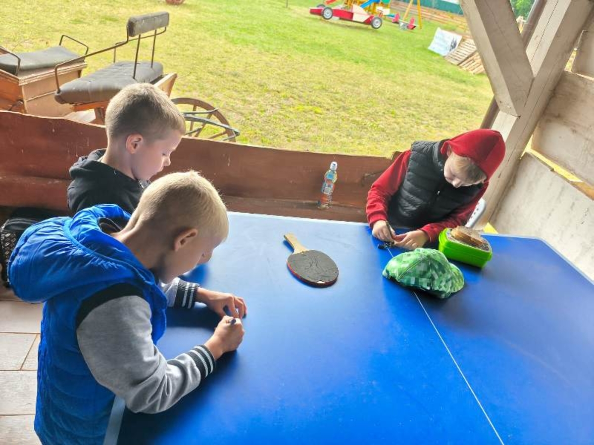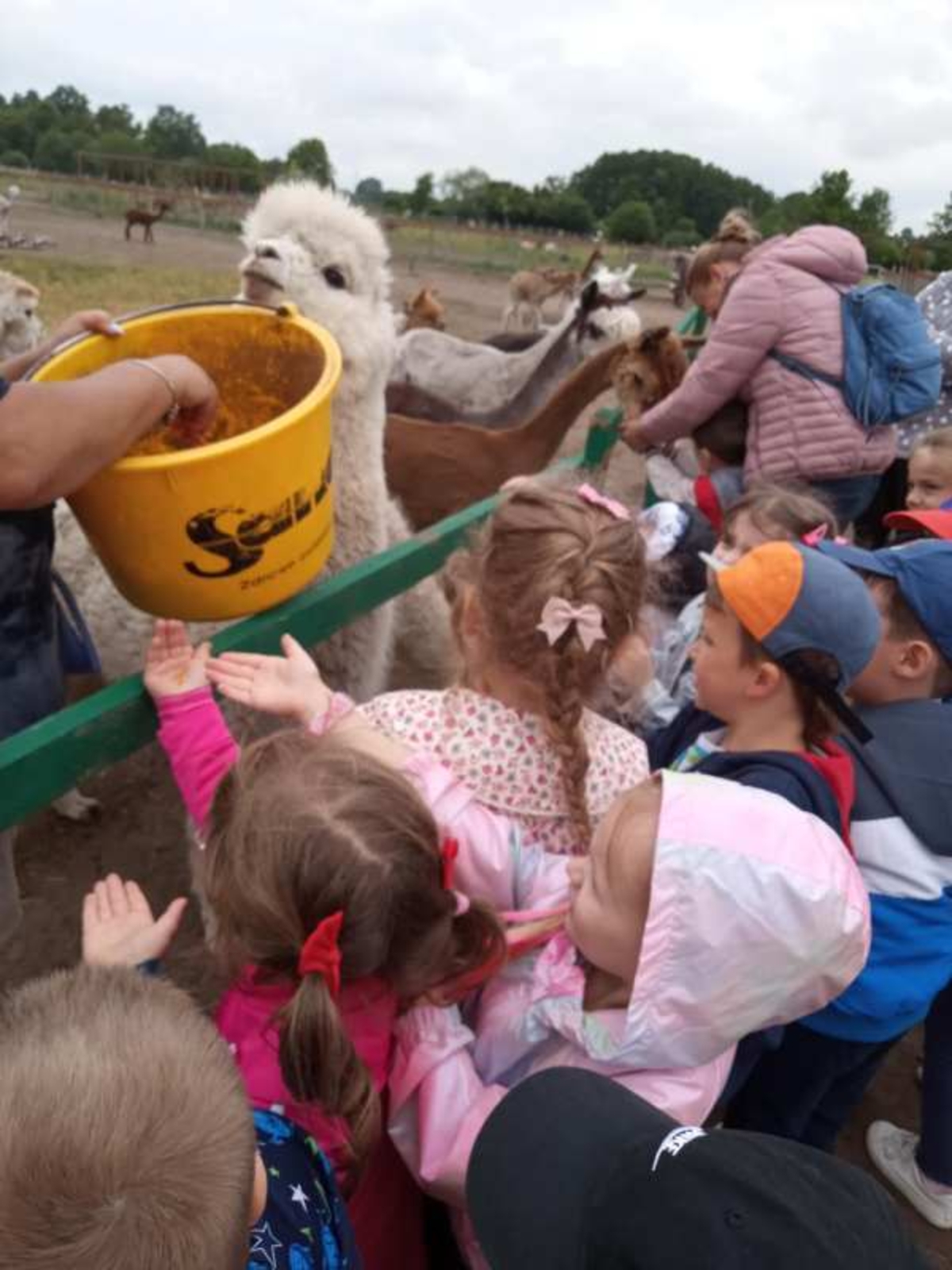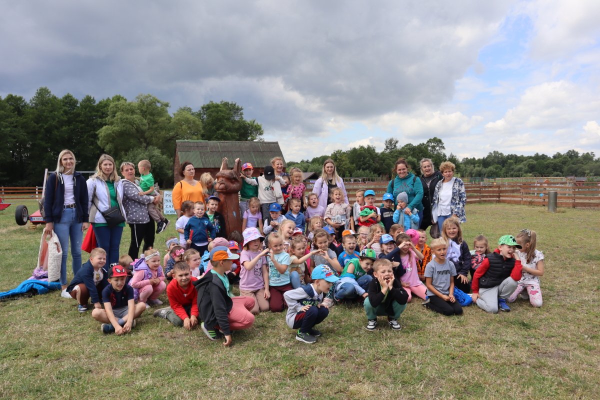 25 czerwca wszystkie dzieci z Przedszkola „Wesoły Promyk” wybrały się na wycieczkę do „Rancza na Sówce” do Bujenki. Czekało tam na nie mnóstwo atrakcji. Na początku zwiedziły całe ranczo i zobaczyły wszystkich jego mieszkańców. Zaczęły od tych najmniejszych, czyli świnek morskich, kurek i kogutów z małymi kurczaczkami różnego gatunku oraz królików. Nie mogło zabraknąć wspaniałego, okazałego pawia. Niesamowitą niespodzianką była mama kangurzyca z maleństwem w torbie i dwie kapibary tak uwielbiane przez dzieci. Następnie udały się do zagrody kóz, aby je nakarmić. Tam przywitała je koza Oliwka. Kolejną atrakcją było karmienie alpak i spacer z nimi. Nawet dzieci, które bały się kontaktu ze zwierzętami, nie mogły się oprzeć tej pokusie. Oprócz tego dzieci miały możliwość wyszaleć się na placu zabaw, odpocząć - wykonując prace plastyczne, no i wydoić krowę. Na zakończenie wszyscy udali się na pyszne, gorące kiełbaski z ogniska i pamiątkowe zdjęcie. Choć pogoda nie wróżyła nic dobrego, dzień okazał się wspaniały i wszyscy bardzo zadowoleni wrócili do przedszkola.