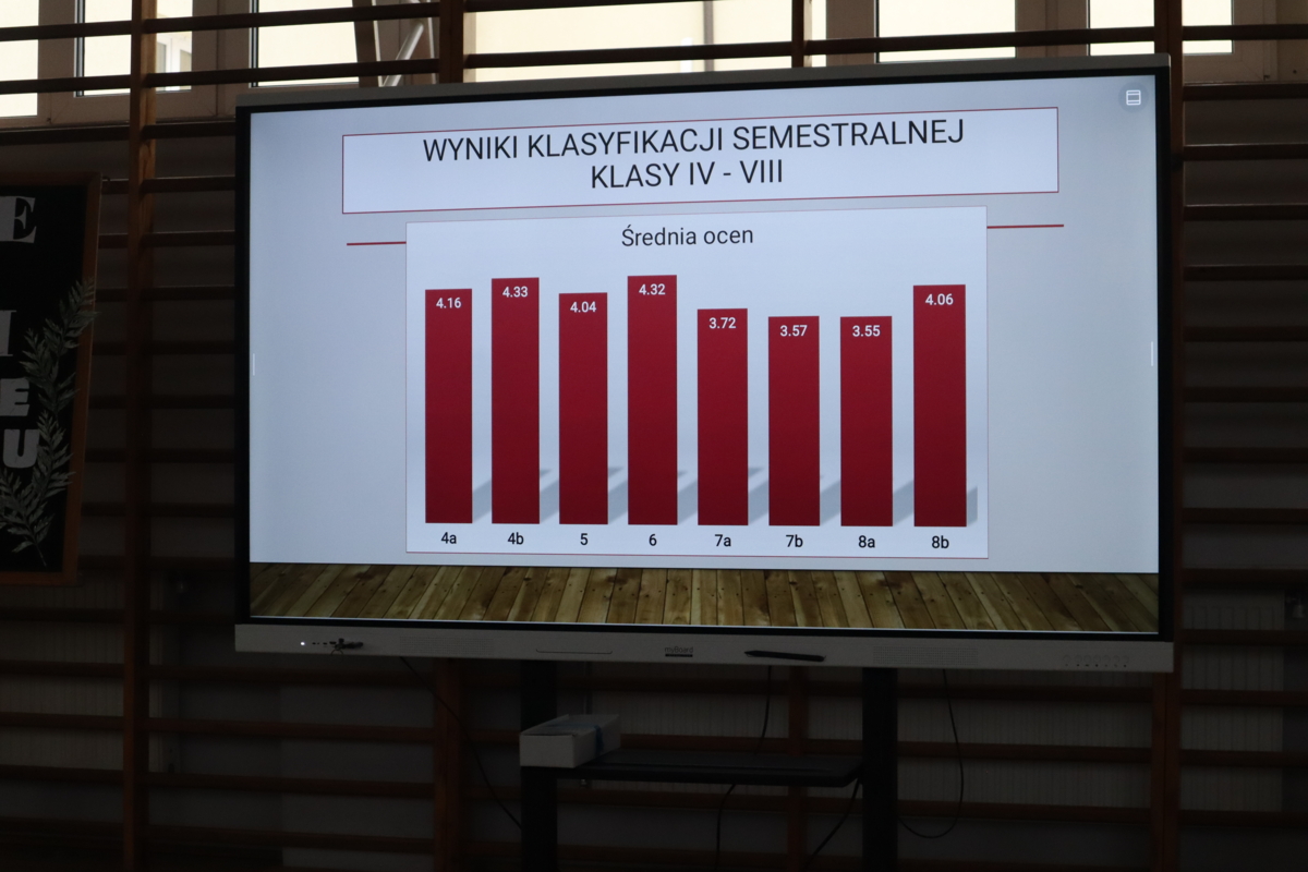 5 lutego odbyło się spotkanie semestralne z rodzicami, podczas którego podsumowano pracę szkoły w pierwszym półroczu. Pani Dyrektor Marzena Olędzka przedstawiła wyniki klasyfikacji klas 1-8, omówiła wyniki egzaminów próbnych klas 8 oraz wręczyła rodzicom uczniów z najwyższymi wynikami listy gratulacyjne.To półrocze obfitowało w wiele wydarzeń, konkursów i projektów, a jeszcze mnóstwo przed nami. Z nową energią i pozytywnym nastawieniem zaczynamy pracę w drugim semestrze.