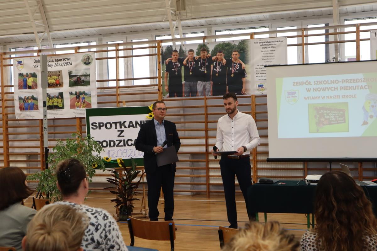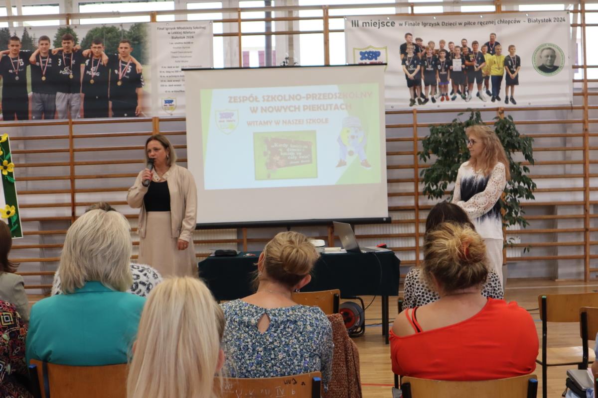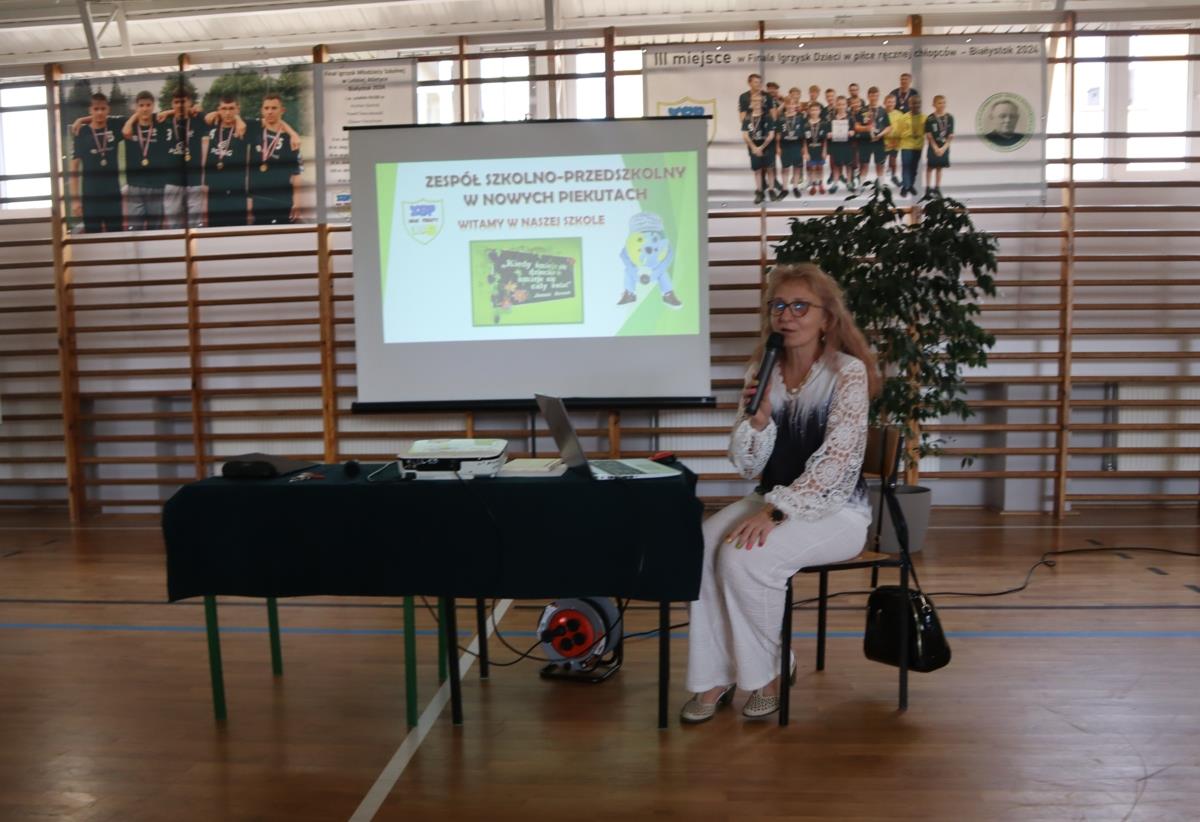 12 września odbyło się spotkanie z rodzicami przedszkolaków i uczniów Zespołu Szkolno – Przedszkolnego w Nowych Piekutach. Dyrektor szkoły, pani Marzena Olędzka, powitała rodziców i nauczycieli. Przedstawiła porządek zebrania. Na początku głos zabrali przedstawiciele SBR, którzy zapoznali rodziców z nową ofertą ubezpieczeniową. Następnie wicedyrektor szkoły, pani Dorota Niemyjska, przy wykorzystaniu prezentacji multimedialnej, omówiła najważniejsze wydarzenia i osiągnięcia uczniów w roku szkolnym 2023/2024. Dyrektor szkoły zapoznała rodziców z planem pracy na rok szkolny 2024/2025. Na zakończenie zebrania ogólnego głos zabrał przewodniczący Rady Rodziców, pan Wojciech Jabłoński. Po jego wystąpieniu rodzice udali się na spotkania z wychowawcami w klasach.
