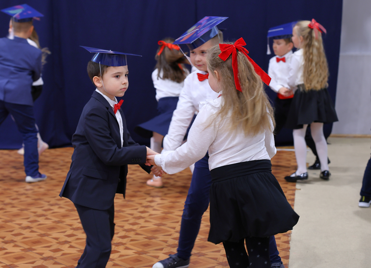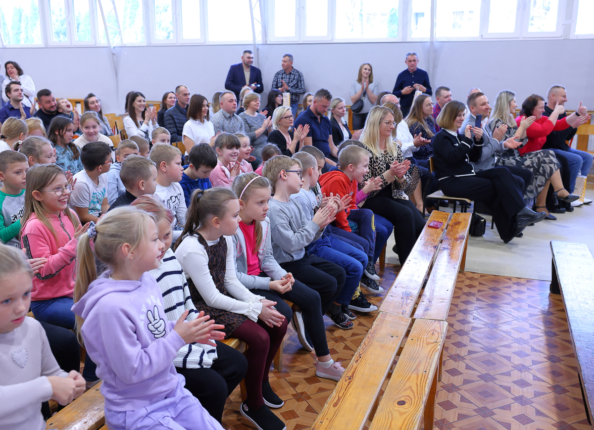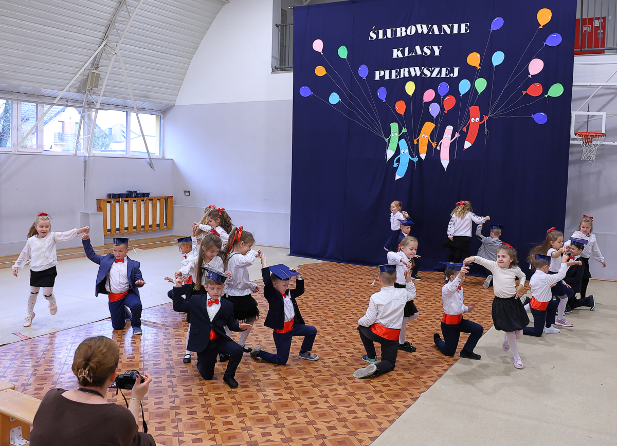 W części artystycznej dzieci zaprezentowały bogaty i pełen radości program przygotowany pod kierunkiem swojej wychowawczyni. Na początek mali uczniowie zatańczyli krakowiaka, wprowadzając wszystkich w uroczysty, a zarazem radosny nastrój.