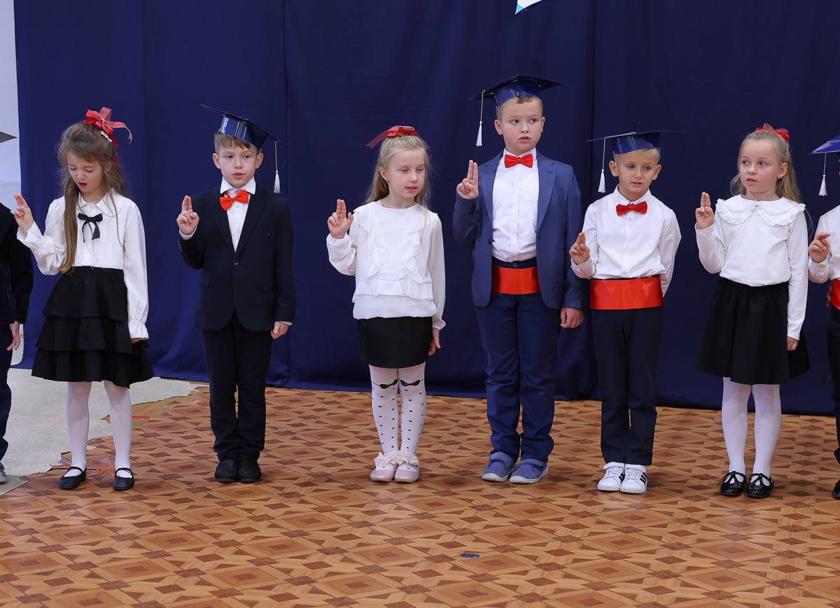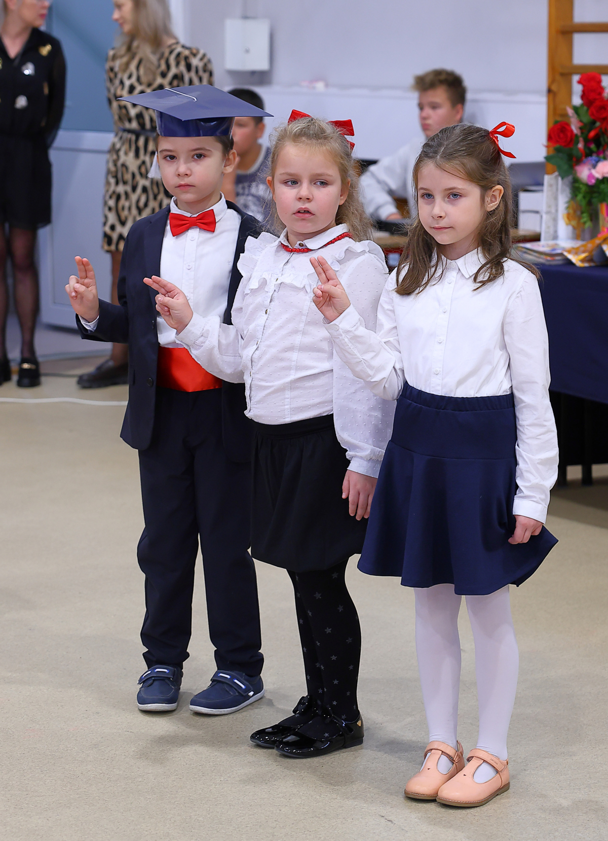 Po akademii nadszedł najbardziej podniosły moment – złożenie ślubowania na sztandar szkoły. Dzieci z powagą obiecały, że będą pilnymi uczniami, dobrymi kolegami i będą godnie reprezentować swoją szkołę.