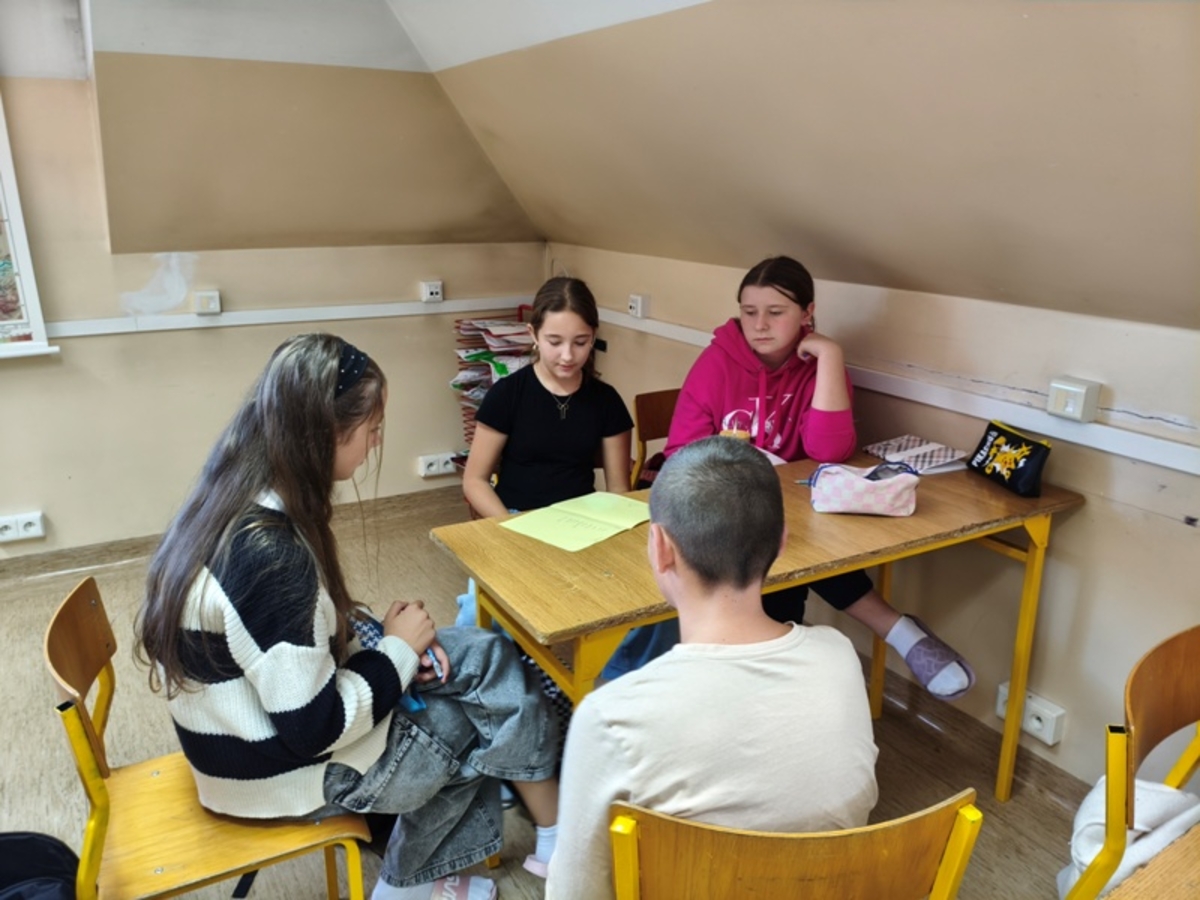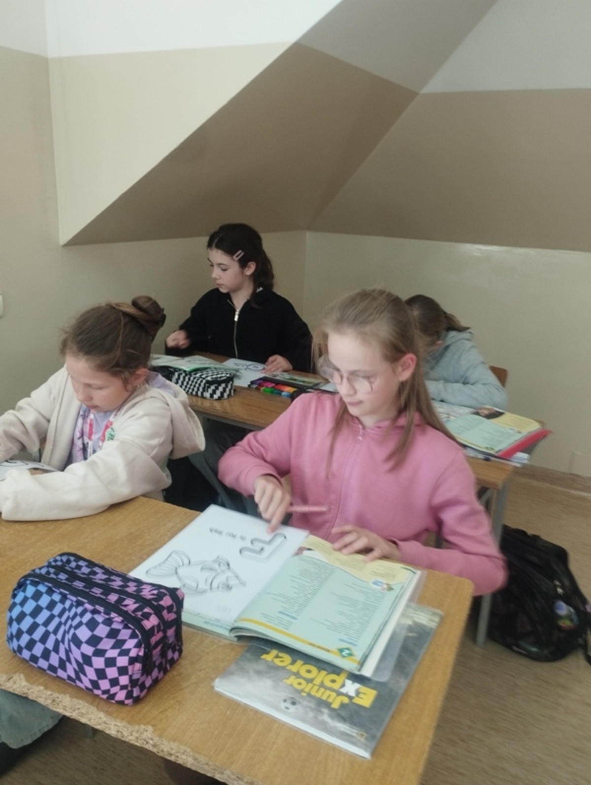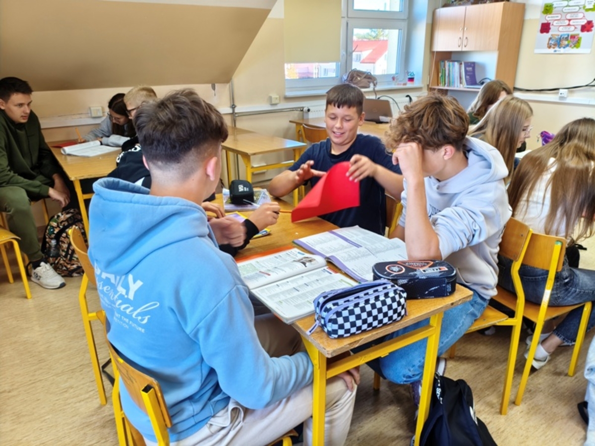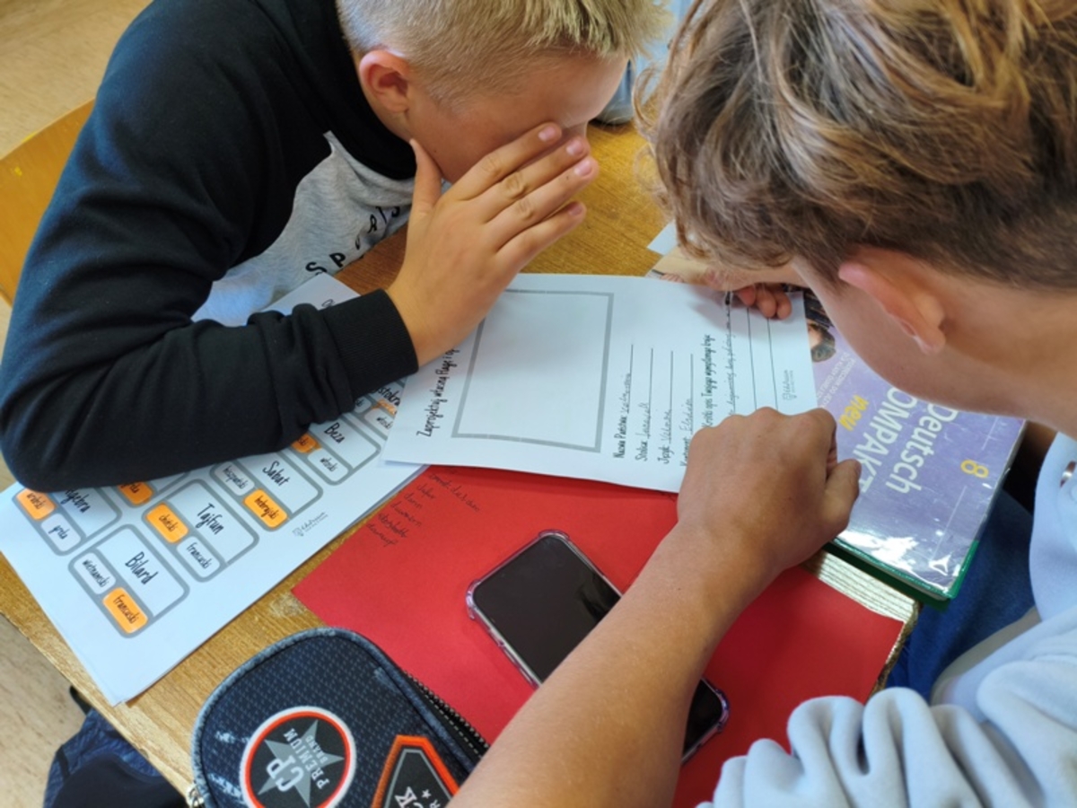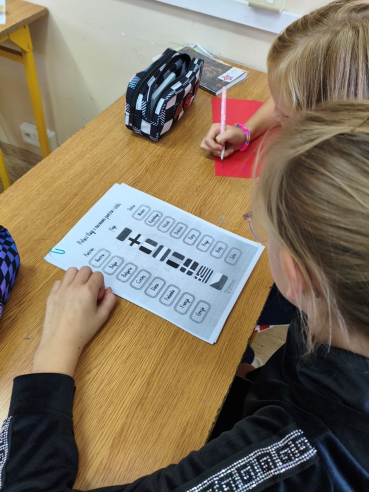 Na lekcji języka angielskiego uczniowie malowali flagi, wykonywali ćwiczenia dotyczące wylosowanego przez siebie państwa europejskiego oraz rozwiązywali ćwiczenia interaktywne. Uczniowie przysłuchiwali się słowu „Cześć” i „Witaj” w różnych językach i próbowali swoich sił w ich powtarzaniu. Poznali państwa i jakie języki są tam używane. Najmłodsi zapoznali się z angielskim alfabetem. Z kolei na lekcji języka niemieckiego uczniowie ze starszych klas podzieleni na grupy odkrywali, z jakiego języka pochodzi dane słowo, sprawdzali swoją wiedzę odnośnie państw, stolic i flag, a także... zakładali własne państwo. Było to nie lada wyzwanie, ponieważ trzeba było wymyślić nazwę państwa i stolicy, zaprojektować flagę oraz krótko opisać powstałe państwo. Zadanie to sprawiło uczniom najwięcej radości. Kolejnym zadaniem było znajdywanie angielskich i niemieckich wyrazów na wylosowaną przez drużynę literę ze skrótu EDJO - Europejski Dzień Języków Obcych.