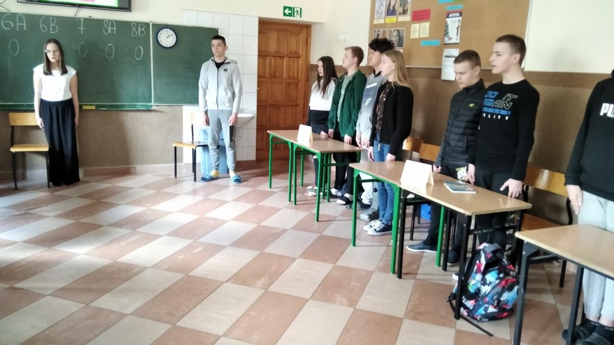 12 kwietnia odbył się międzyklasowy konkurs pod hasłem „Sybir – ziemia cierpień”. Jego pomysłodawcą, organizatorem i autorem zadań był opiekun Klubu Wnuka Sybiraka, nauczyciel historii Pan Jan Pogorzelski. W skład komisji konkursowej weszły Panie: Maria Łapińska, Katarzyna Niewińska, Alicja Piekutowska. Do rywalizacji przystąpili uczniowie z klas VI – VIII naszej szkoły. Główne cele konkursu to: poszerzanie wiedzy uczniów o losach Polaków zsyłanych na Sybir, ze szczególnym uwzględnieniem Sybiraków z gminy Nowe Piekuty, kultywowanie pamięci o polskich zesłańcach, uwrażliwianie uczniów na zło i krzywdę wyrządzoną deportowanym, wspieranie wychowania patriotycznego, wzmacnianie więzi młodzieży z małą ojczyzną. Na początku zebrani odśpiewali „Marsz Sybiraków”, a potem konkurs zainaugurowała Pani Dyrektor Danuta Wyszyńska. Następnie reprezentacje poszczególnych klas przystąpiły do rywalizacji. Do rozwiązywania niektórych zadań włączane były całe zespoły klasowe. Ostatecznie po kilkudziesięciu minutach komisja konkursowa ogłosiła, że pierwsze miejsce zajęła klasa VIA, drugie miejsce klasy VII i VIIIB, trzecie miejsce klasa VIB, a czwarte klasa VIIIA. Na indywidualne wyróżnienia zasłużyła reprezentacja klasy VIA – Jakub Jabłoński, Paweł Osmólski, Oliwia Sołowińska.