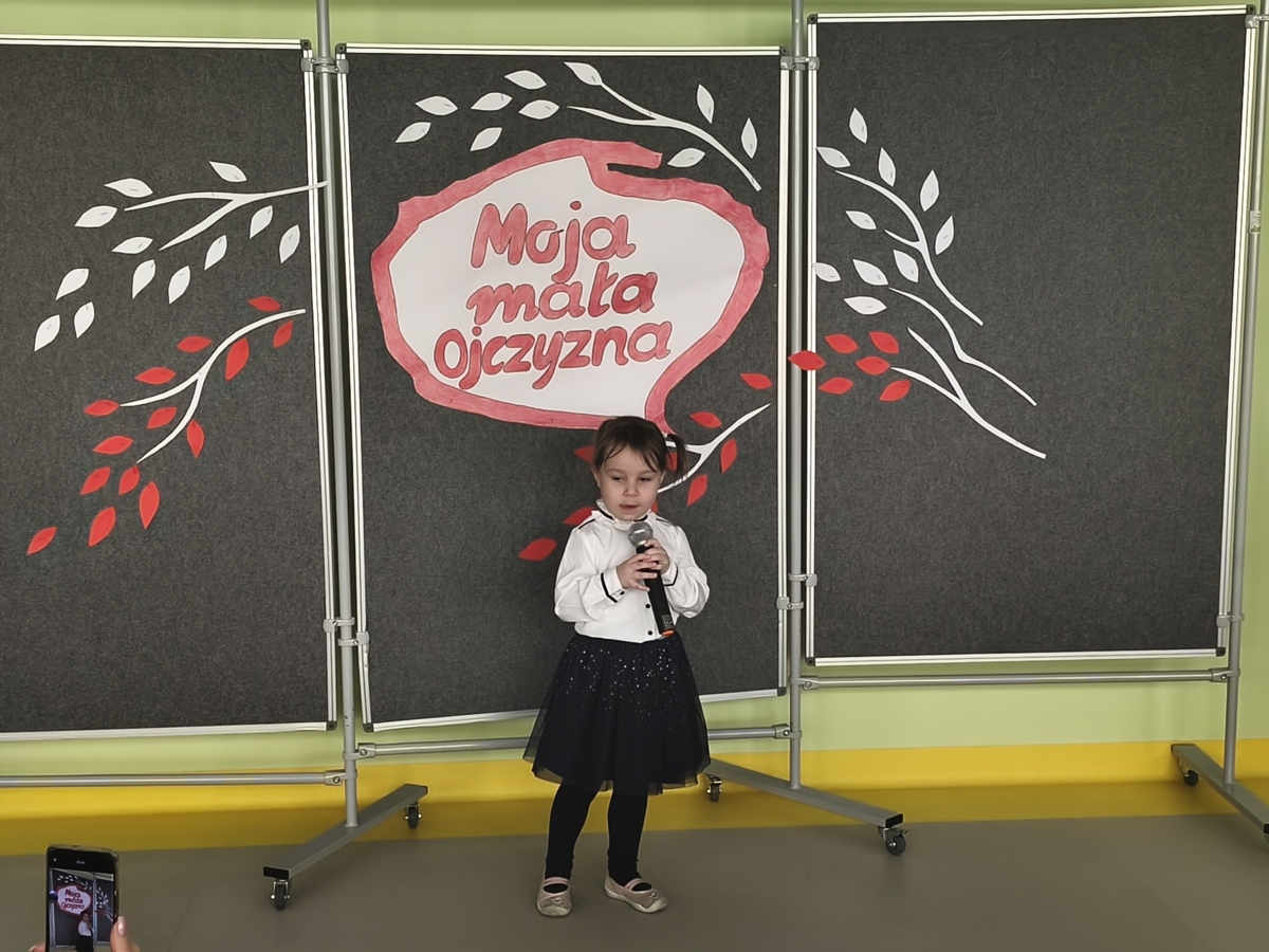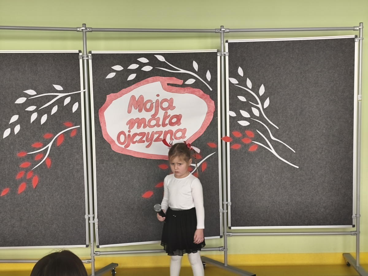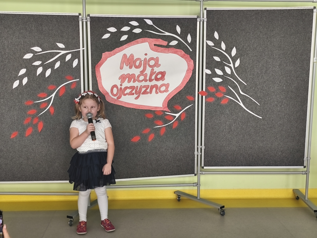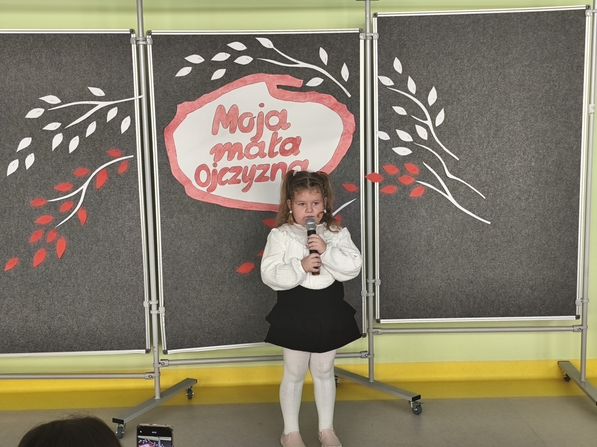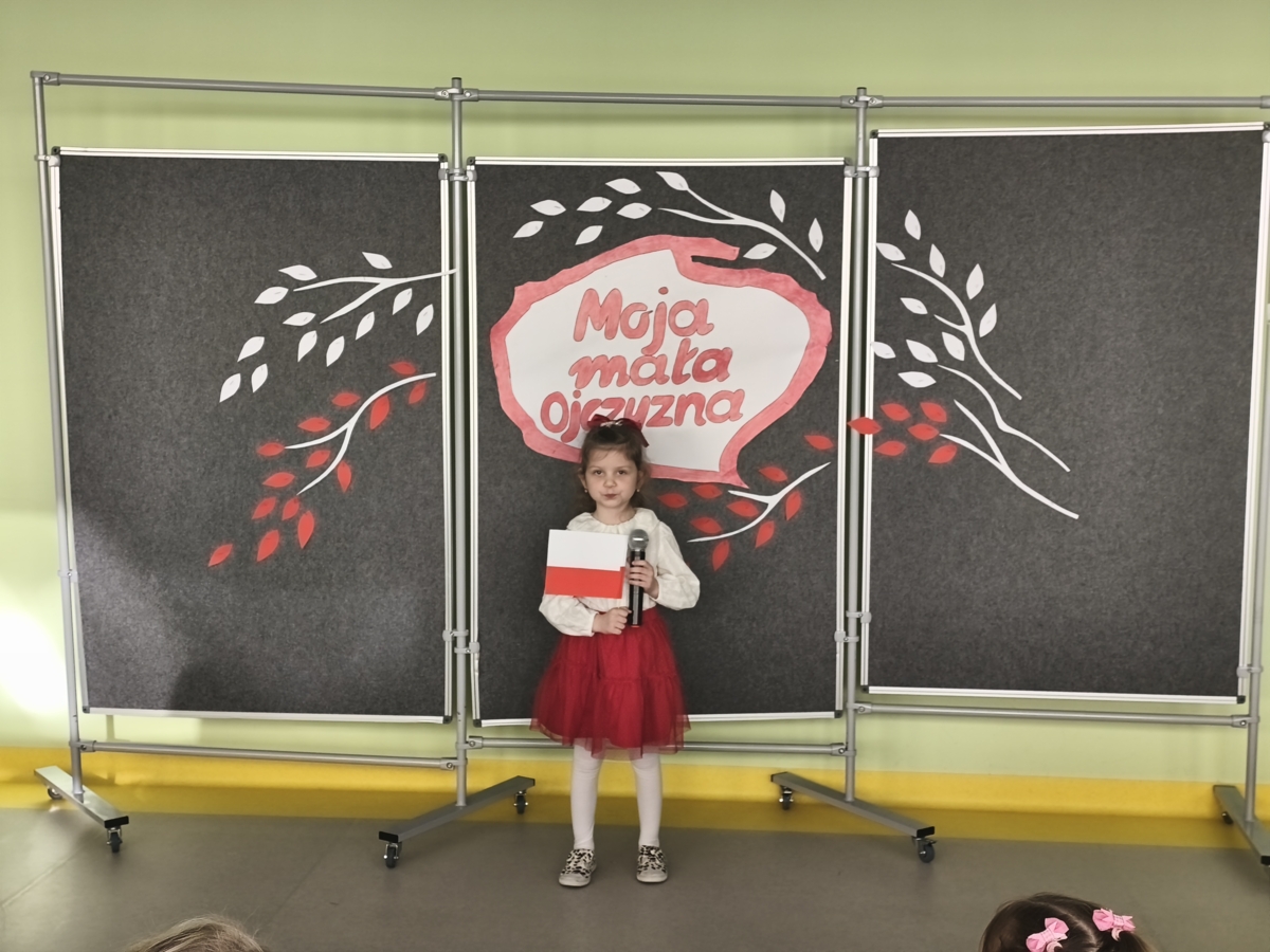24.11.2025 r. w naszym przedszkolu odbył się konkurs recytatorski pod hasłem „MOJA MAŁA OJCZYZNA”. Zanim jednak dzieci zaczęły recytować wiersze dziewczynki: Zuzanna Kacner i Iga Jankowska zaprezentowały pieśni patriotyczne, które prezentowały na Powiatowym Konkursie Piosenki Patriotycznej. Następnie dzieci recytowały wiersze związane z ich miejscem zamieszkania i krajem, w którym mieszkają.