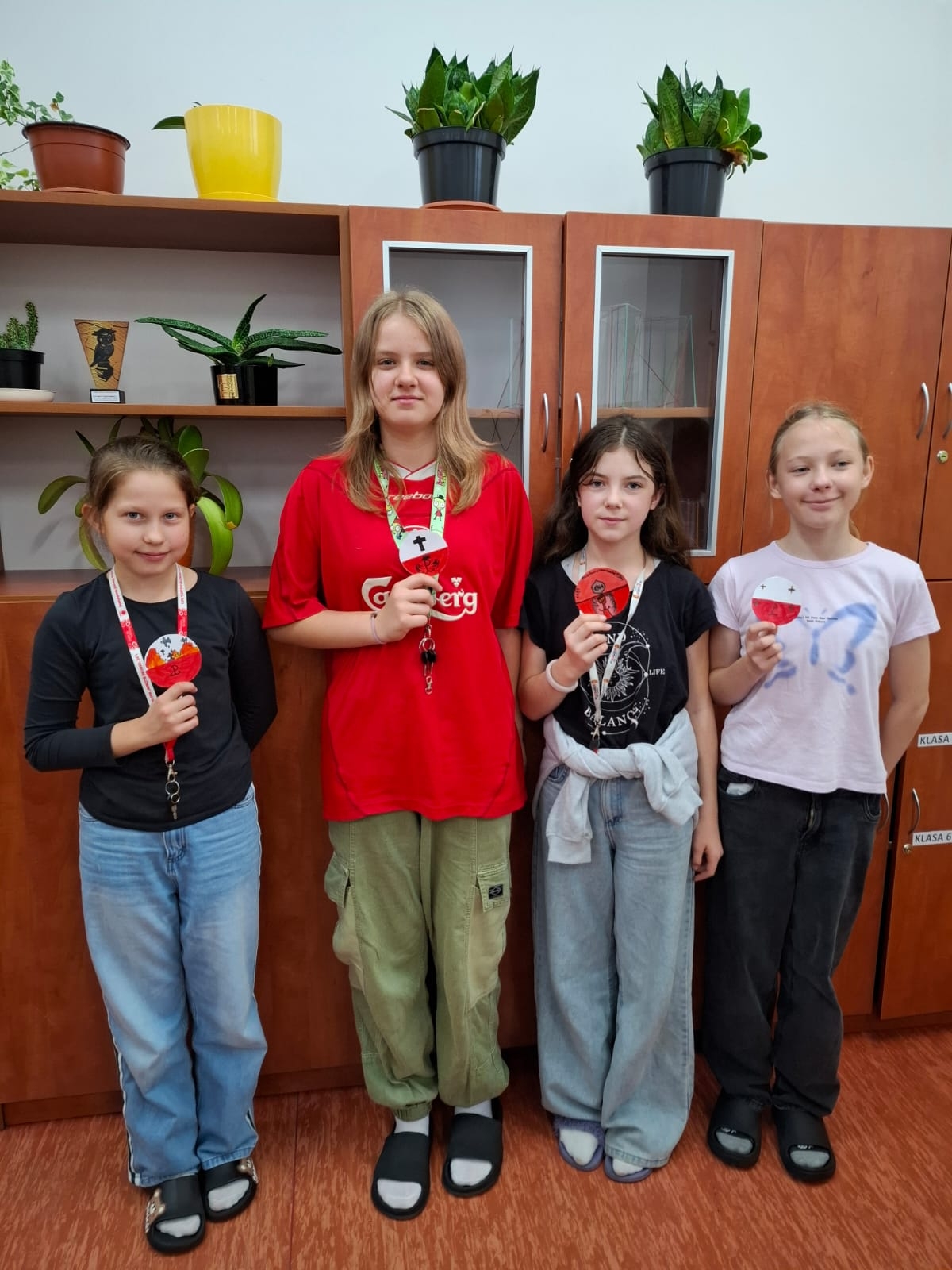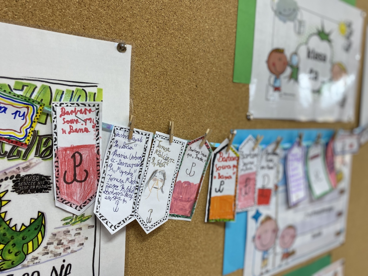 W październiku bieżącego roku szkolnego kl. 4a, 4b, 5 i 6 wzięły udział w projekcie BohaterOn. Na lekcjach historii uczniowie zostali zapoznani z wydarzeniami związanymi z Powstaniem Warszawskim. Tegoroczna edycja projektu poświęcona była kobietom, które wzięły aktywny udział w powstaniu. Działały one w służbach bojowych i wpierających oraz były łączniczkami i sanitariuszkami. Na zajęciach uczniowie wypełnili mapy myśli zatytułowane "Kobiety w Powstaniu Warszawskim" oraz wykonali prace plastyczne pod hasłem "Odznaczenie dla bohaterki Powstania Warszawskiego". Dodatkowo uczniowie kl. 4a i 4b, pod bacznym okiem swoich wychowawczyń, wykonali zawieszki, na których przedstawili sylwetki wybranych uczestniczek powstania warszawskiego. Natomiast chętni uczniowie kl. 5 i 6 podobne zawieszki zrobili samodzielnie w domu. Ponadto kl. 4b, zainspirowana tematem, z własnej inicjatywy wykonała logo powstania.